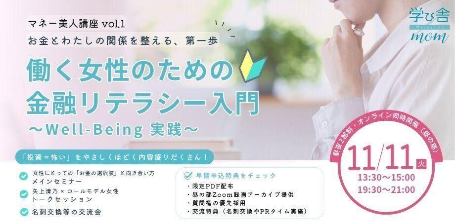 学び舎mom 11/11(火) 整える美学シリーズ vol.1|マネー美人講座(ハイブリッド開催/参加費無料)